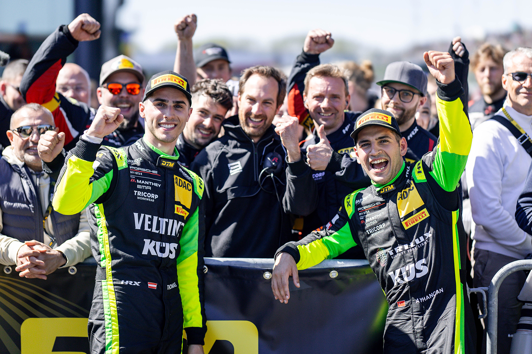 Mit kluger Strategie und perfekten Reifenwechseln verwies Güven Winward-Mercedes-Pilot Jules Gounon (Polesetter) und Teamkollege Thomas Preining auf die Plätze. Manthey durfte damit gleich doppelt jubeln – starker Auftakt für das Kultteam aus Meuspath und seine beiden Grellos, wie die Porsche 911 GT3 aufgrund ihrer grellen Lackierungen liebevoll genannt werden.
