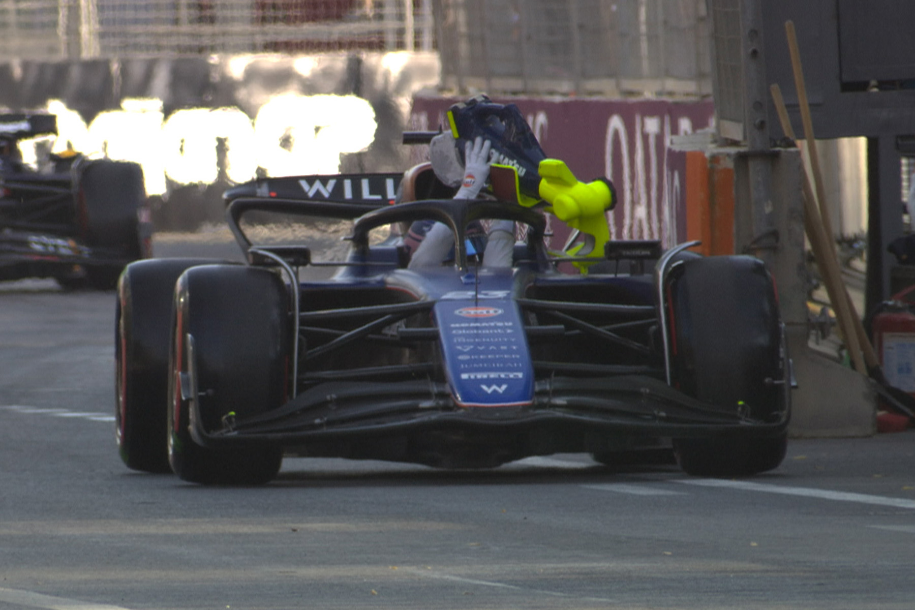 Kuriose Szene zu Beginn des dritten Abschnitts: Alex Albon fährt mit dem Kühllüfter vor seiner Airbox los und merkt das erst auf dem Weg aus der Boxengasse auf die Strecke. Immerhin, selbst ist der Formel-1-Fahrer: Der Williams-Pilot greift über seinen Kopf und schiebt das Gerät einem Streckenposten zu. Am Ende kostet ihn der Zwischenfall aber doch Speed: Albon kommt nicht mehr rechtzeitig über den Zielstrich, sein neuer Teamkollege Franco Colapinto ist auf Rang neun rund 0,3 Sekunden schneller.