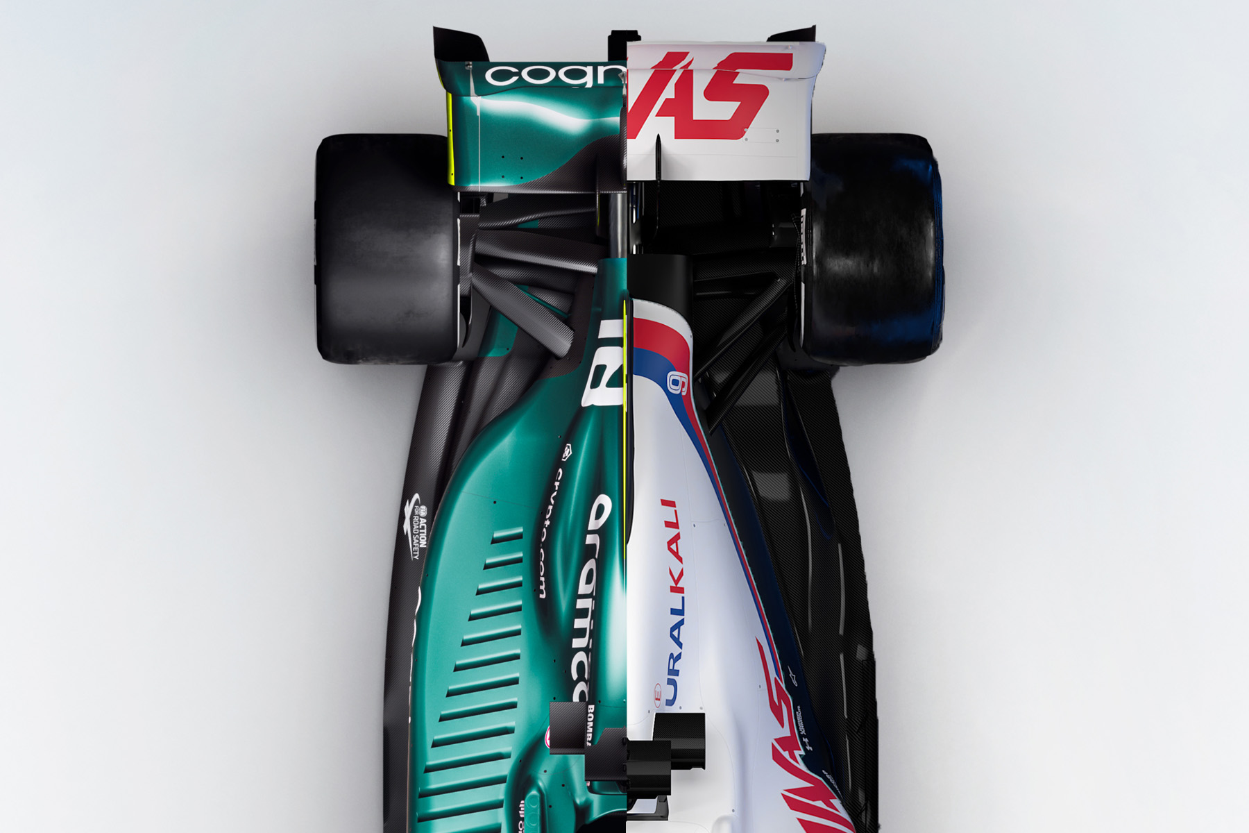 Der AMR22 und der VF-22 im Vergleich. Credit: Aston Martin; Haas