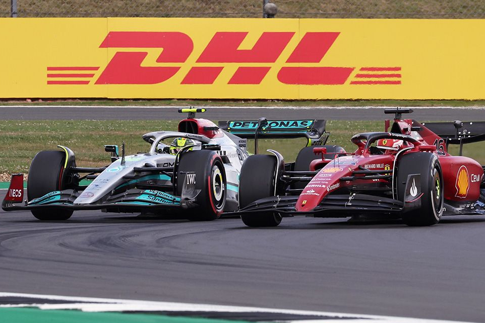 Lewis Hamilton im Duell mit Charles Leclerc. Credit: Mercedes