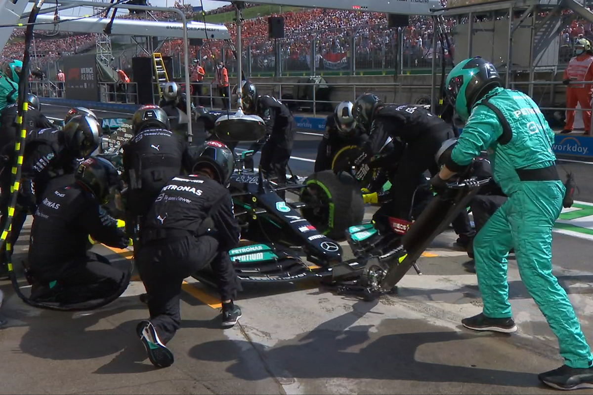 Herausfordernd war auch der GP vor den Toren von Budapest, denn so etwas hat selbst Hamilton noch nicht erlebt: Beim Restart steht der Weltmeister auf einmal ganz allein in der Startaufstellung. Kurios: Weil in der zweiten Einführungsrunde der zuvor nasse Hungaroring stark abtrocknet, kommen alle außer dem Führenden zum Reifenwechsel an die Box.