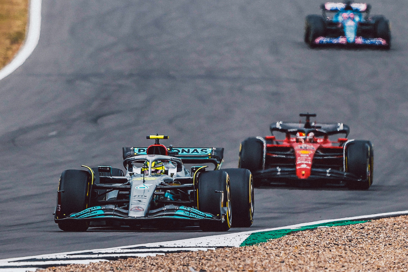 Während die britischen Fans am Sonntag jedes Überholmanöver gegen Verstappen extralaut bejubeln, kommen sich die Streithähne diesmal auf der Strecke nicht ins Gehege: Verstappen führt den Grand Prix zwar zwischenzeitlich an, fällt nach Beschädigungen an seinem Unterboden durch überfahrene Trümmerteile im waidwunden RB18 dann aber bis auf den siebten Platz zurück.