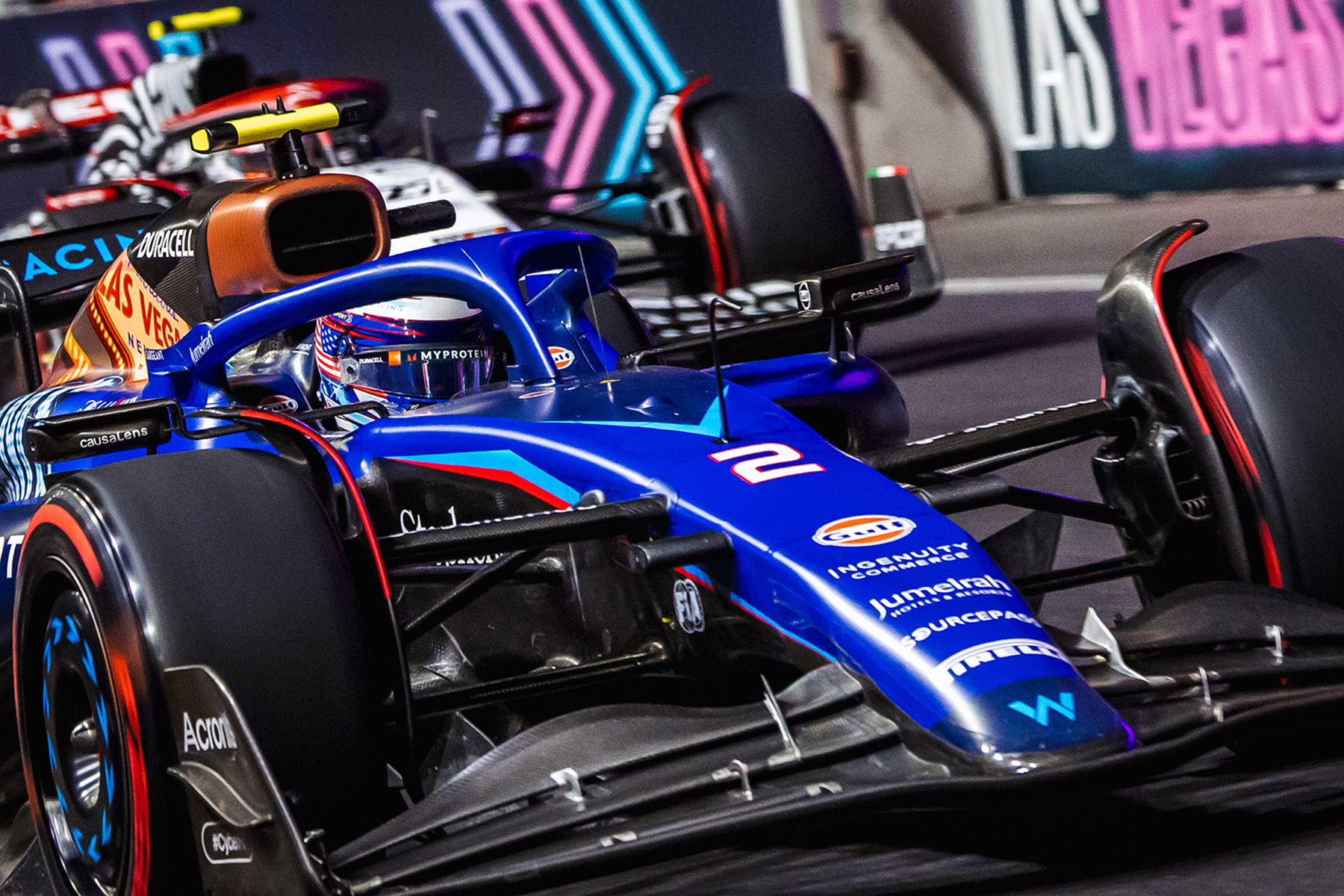 So langsam nimmt das Vegas-Wochenende der Formel 1 doch noch Fahrt auf: Im Abschlusstraining am Freitagabend Ortszeit schießen sich die Piloten auf dem neuen Stadtkurs eine Stunde aufs Qualifying ein – bis kurz vor Schluss Williams-Pilot Alex Albon sein Auto in der Mauer versenkt und das Training mit gut fünf Minuten auf der Uhr mit der roten Flagge abgebrochen und beendet wird.