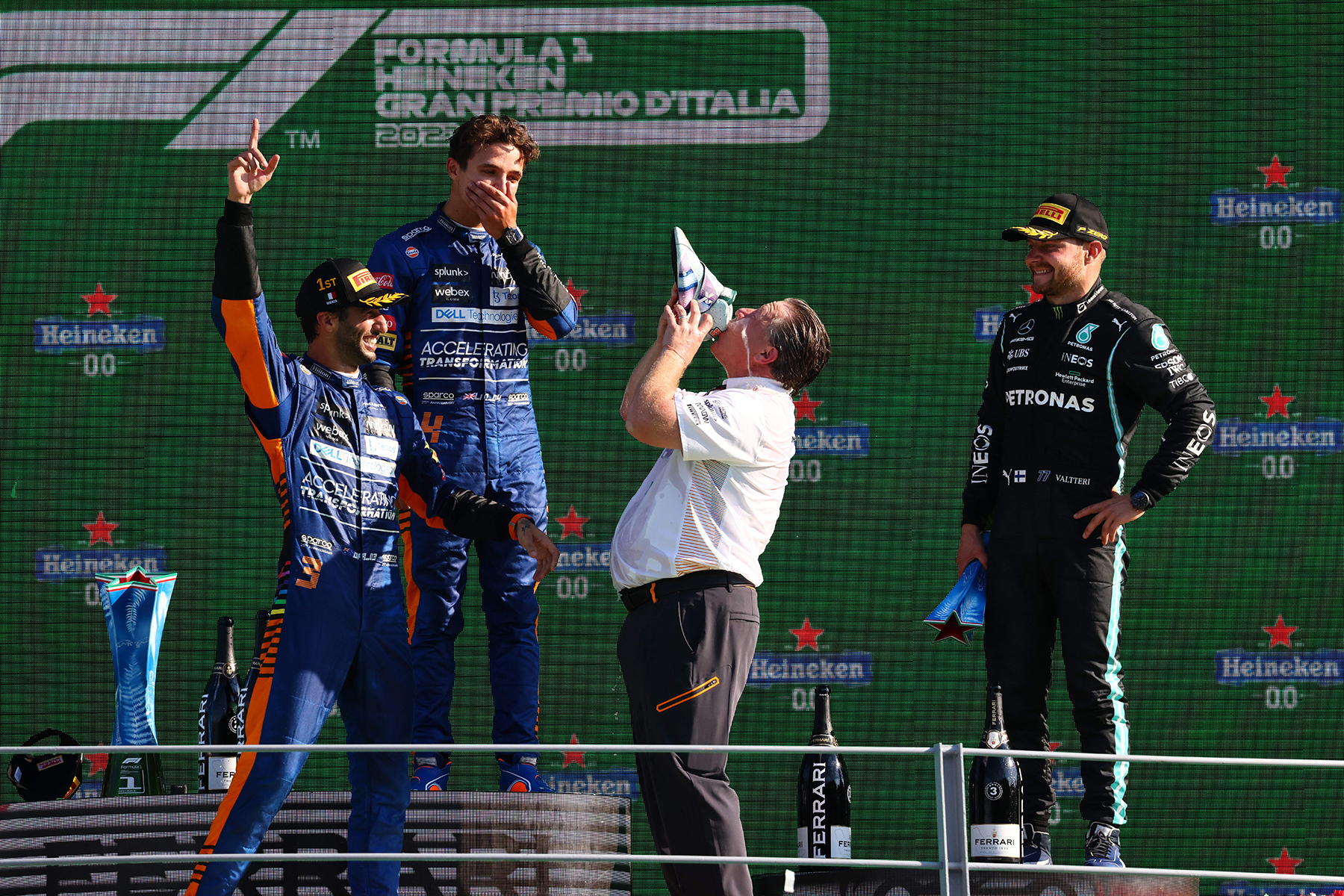 Das zweiterfolgreichste Formel-1-Team aller Zeiten jubelt wieder: McLaren beendet nach acht Jahren, neun Monaten und 18 Tagen die längste Durststrecke der Teamgeschichte. Daniel Ricciardos Sieg beim Italien-GP (sein erster seit Monaco 2018, der achte insgesamt) ist der erste McLaren-Erfolg seit Brasilien 2012 (durch Jenson Button). Es ist der 183. Sieg für McLaren in der Formel-1-WM.