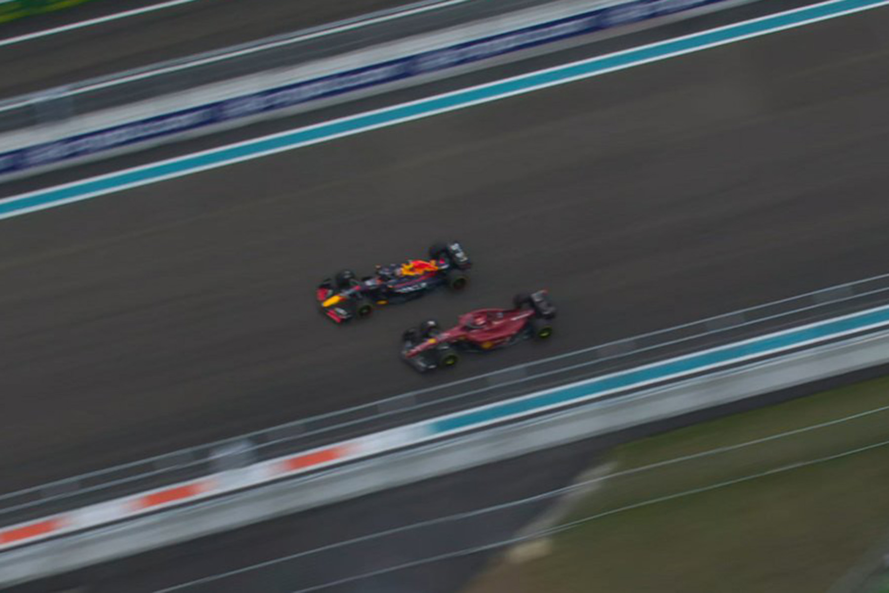 Runde 43: Safetycar. Verstappen führt vor Leclerc, Sainz, Perez, Bottas, Hamilton, Russell, Alonso, Schumacher, Magnussen, Ocon, Albon, Stroll, Vettel. Perez war in der Box, hat als einziger der Spitzengruppe frische Medium.