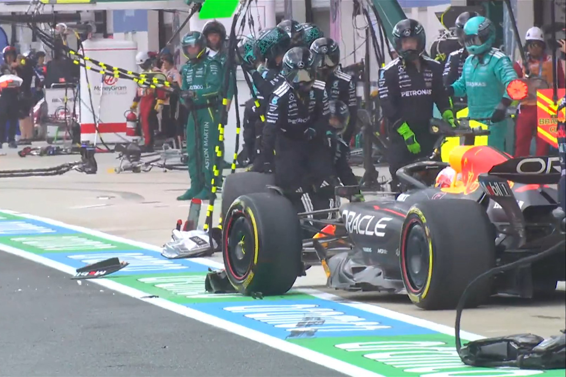 Überhaupt hat der Italiener keinen guten Samstag: Auf dem Weg zum Reifenwechsel in die Mercedes-Box holpert er über Verstappens Frontflügel, der von seiner Crew unsicher zurück in die Fast Lane geschickt wird. Antonelli fällt bis auf Platz zehn zurück, Verstappen bekommt eine Zehn-Sekunden-Strafe und wird statt Dritter nur 17.