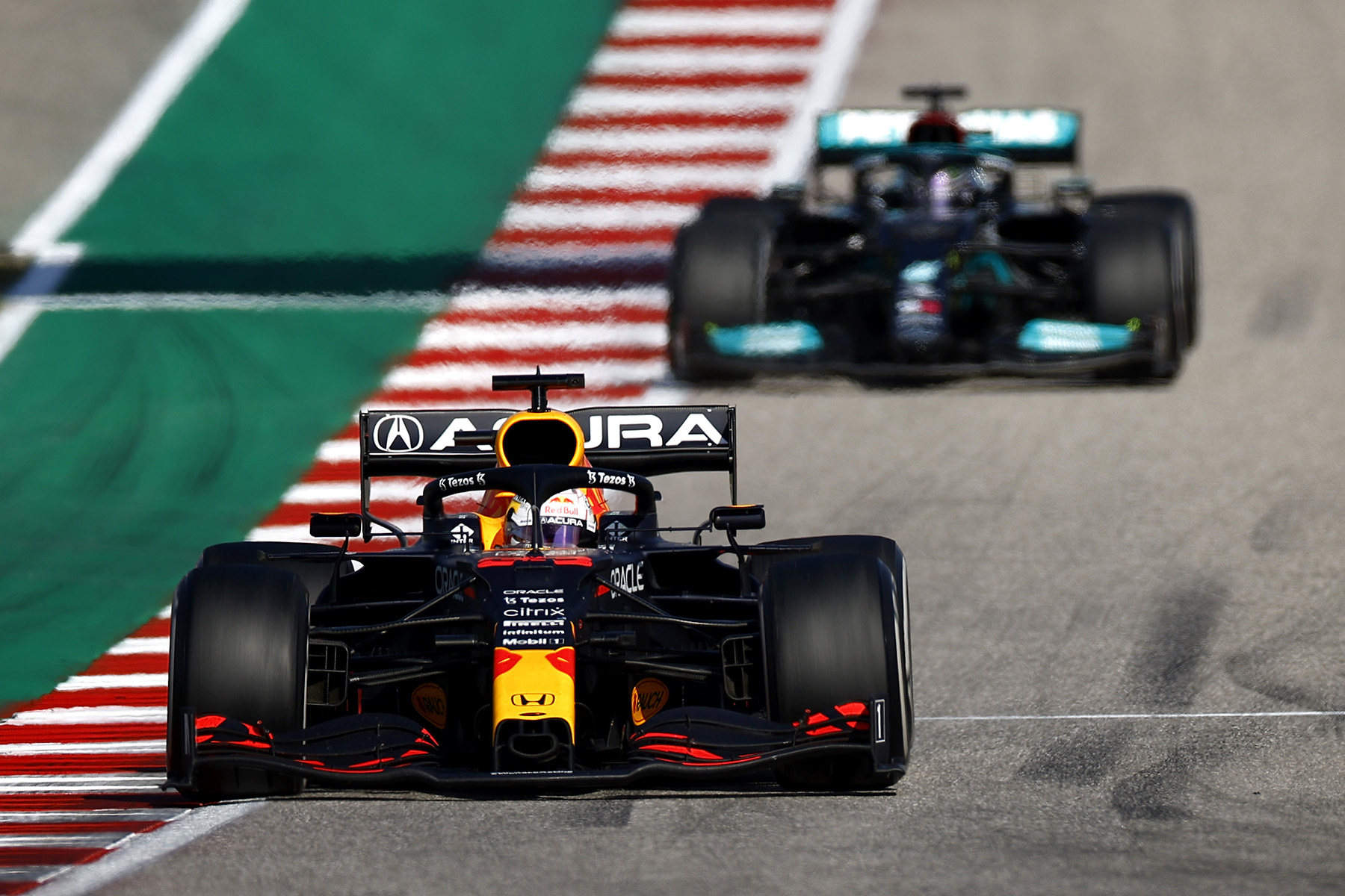 Hamilton holt auch den Extrapunkt für die schnellste Rennrunde, verliert dadurch nur sechs WM-Punkte auf Verstappen und liegt fünf Rennen vor Schluss nun zwölf Zähler hinter dem Red-Bull-Star. Dessen Teamkollege Sergio Perez komplettiert zur Freude der vielen mexikanischen Fans in Texas als Dritter das Podium.
