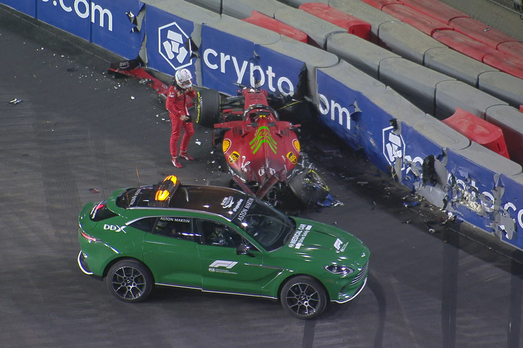 Besonders zu spüren bekommt das Ferrari-Pilot Charles Leclerc. Der Monegasse ist der Erste, den die kurvenreiche Hochgeschwindigkeitsbahn vom deutschen Architektenbüro Tilke unsanft abwirft: In der schnellen Kurve 22 verliert Leclerc beim Einlenken das Heck und zerlegt seinen Ferrari in der Bande. Der Schaden am Auto ist immens, Leclerc aber wohlauf und nach einem Check im Medical Center schnell zurück in der Ferrari-Box, um den Mechanikern sein Missgeschick zu erklären.
