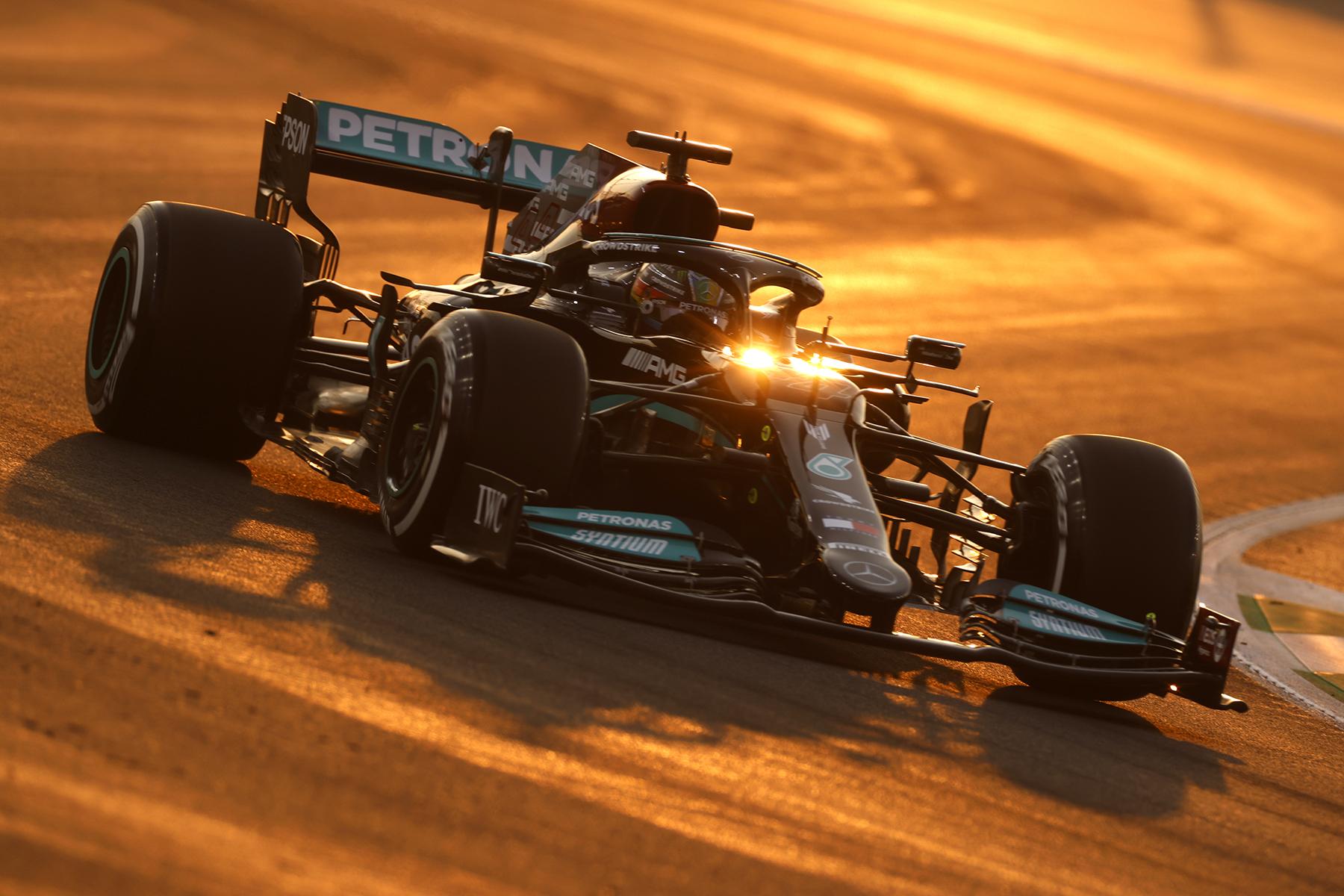 „Dieser Kurs verzeiht keine Fehler, das haben wir heute schon mal gesehen“, erklärt Mercedes‘ leitender Renningenieur Andrew Shovlin nach dem ersten Trainingstag. Mit Blick auf die wegen des hohen Vollgasanteils von 83 Prozent favorisierten Schwarzpfeile, sagt der Brite: „Tagsüber war es besser für uns, als die Strecke noch wärmer war. In der Nachtsession hatten wir definitiv mehr Probleme, vor allem auf den weichen Reifen. Unser Longrun war aber stark, die Basisperformance stimmt also schon mal.“