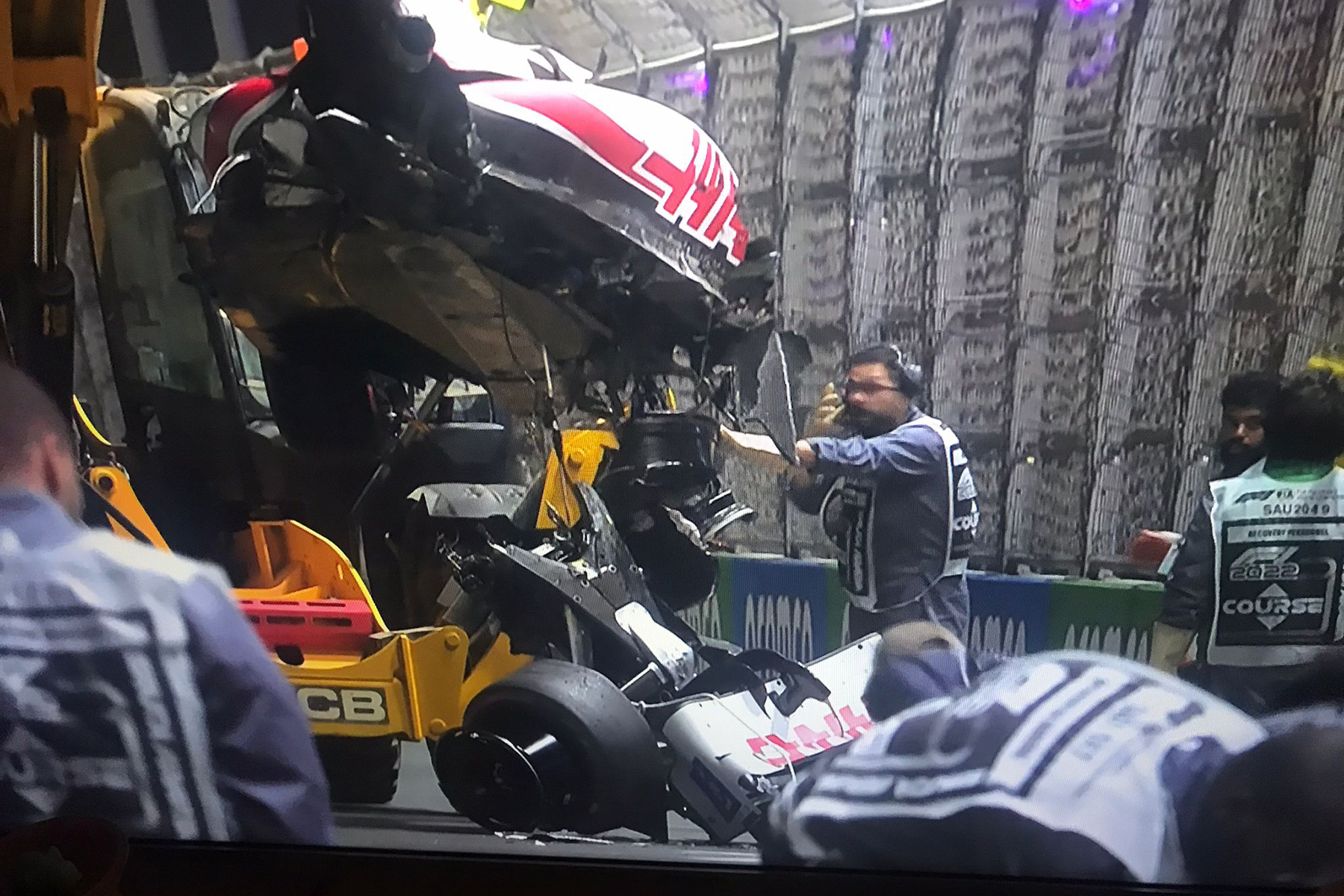 In Q2 sorgt ein schwerer Unfall von Mick Schumacher für rote Flaggen und eine lange Unterbrechung. Der Deutsche verliert seinen Haas in Kurve elf auf einem Randstein, dreht sich und schlägt seitlich voll in die Mauer ein. Die Regie zeigt Mick zunächst nicht. Überall sorgenvolle Blicke. Unpassend: Während der Krankenwagen neben dem Haas parkt, ballert laute Partymusik über die Streckenlautsprecher. Nach rund fünf Minuten gibt Haas eine erste Entwarnung: Schumi junior ist bei Bewusstsein und auf dem Weg ins Streckenhospital. Offenbar ist er seitlich mit dem Kopf an den Headrest geknallt. Der Haas ist völlig zerstört, das Heck mit dem Motor abgebrochen.