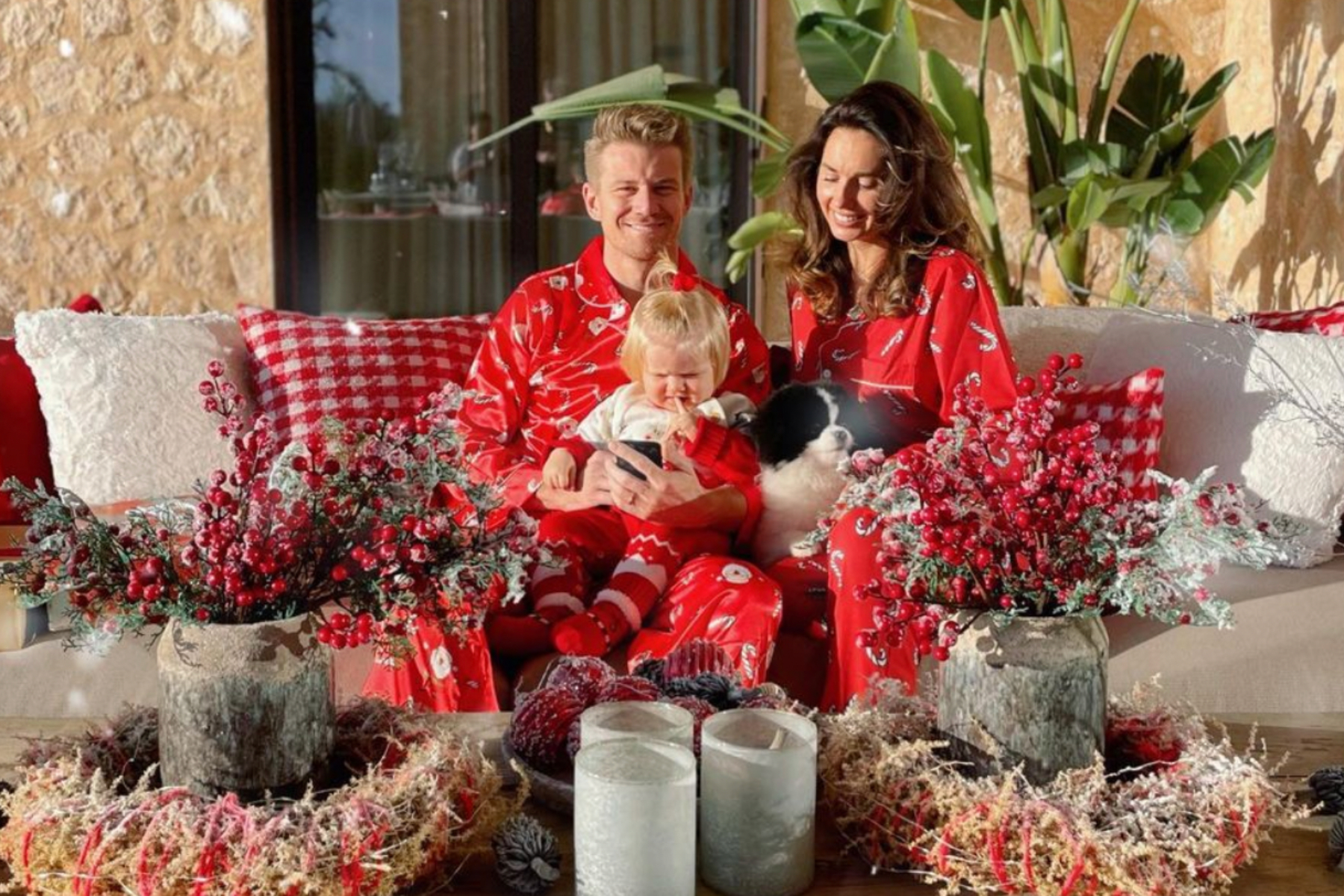 Der dritte Deutsche im F1-Bunde und der einzige, der 2023 auch aktiv in der Startaufstellung steht, ist Nico Hülkenberg: Der Haas-Neuzugang feierte in der spanischen Wintersonne Mallorcas, Frau Egle lud ein Foto der beiden mit dem gemeinsamen Töchterchen und Hund Zeus hoch, gekleidet in modischen X-Mas-Schlafanzügen.