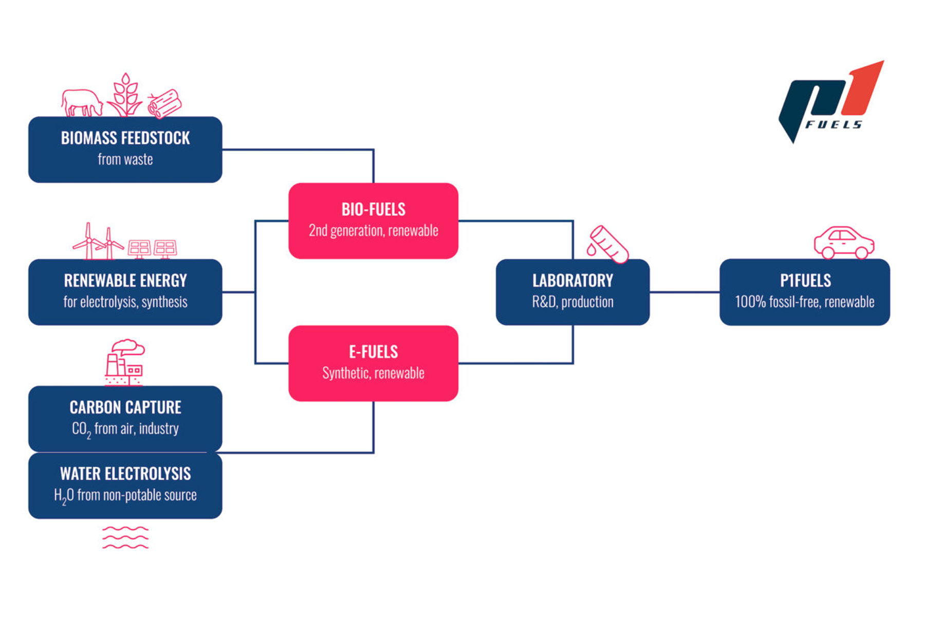 Der Sprit stammt von der deutschen Firma P1, die den Kraftstoff in Belgien produziert und dabei Biosprit und synthetische E-Fuels kombiniert. Kosten: 5,95 Euro pro Liter. Noch: Denn je mehr Kraftstoff dezentral dort hergestellt wird, wo es erneuerbare Energien im Überfluss gibt  (z.B. Offshore-Windparks in Dänemark, Sonne in der Sahara, Termalenergie in Island), desto günstiger wird er.