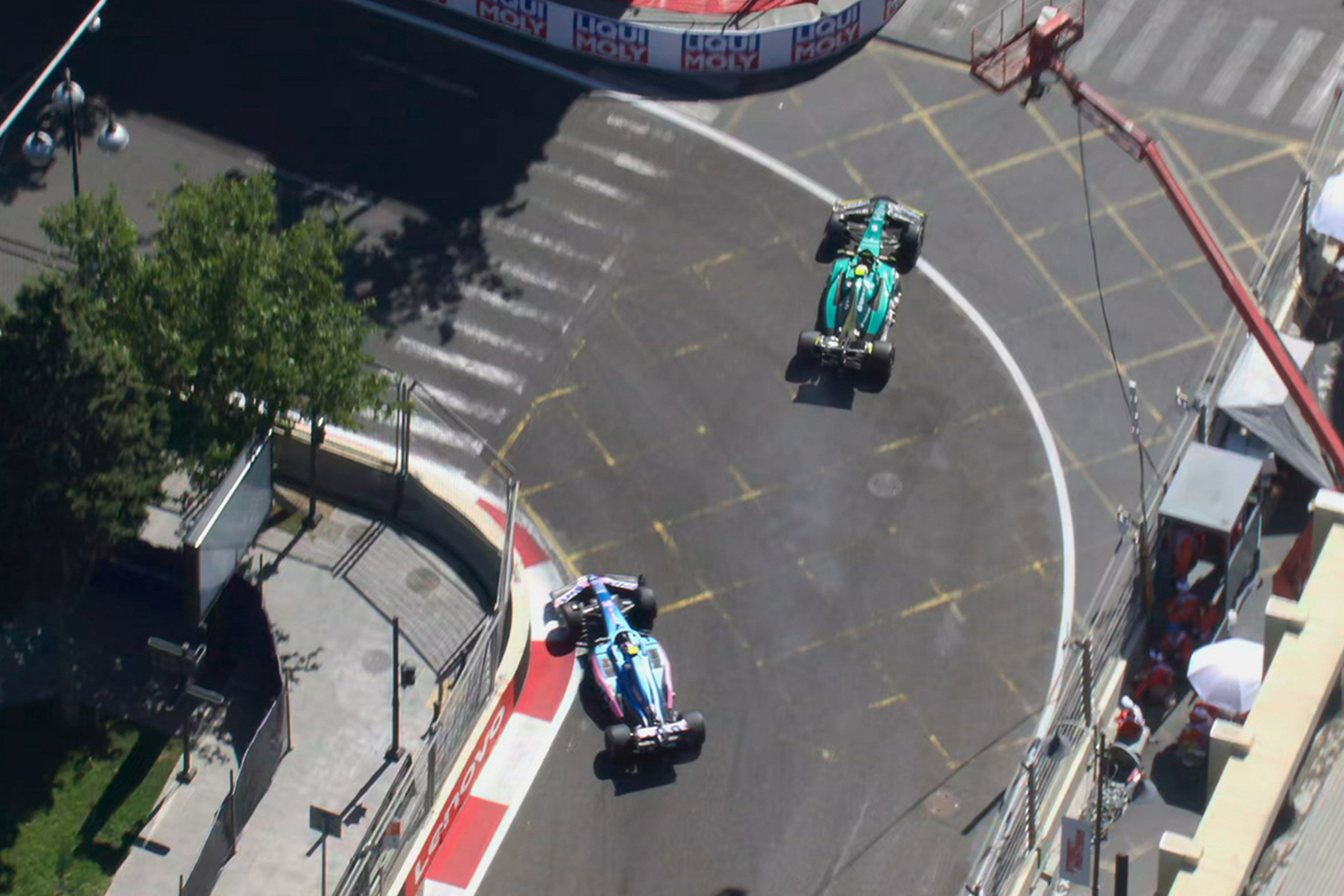 Über diesen Fehler muss Sebastian Vettel selbst schmunzeln: Der Aston-Martin-Star rast in Baku auf den starken sechsten Platz, findet sich auf dem Weg dahin nach einem Duell mit Esteban Ocon in Runde 13 aber einmal im Notausgang wieder. Vettel reagiert nach dem Missgeschick blitzschnell und dreht den Aston Martin im feinsten Rallye-Stil um, wie bei einer Wende mit der Handbremse.