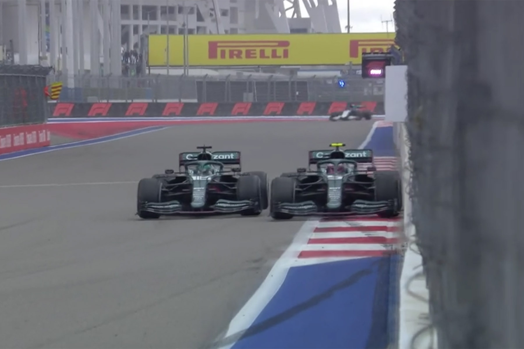 Ganz happy war man bei Aston Martin allerdings nicht mit der Zusammenkunft der beiden grünen Renner auf der Strecke. Kameras fingen ein, wie Teambesitzer Lawrence Stroll und Teamchef Otmar Szafnauer sich die Szene in der Hospitality von Vettel erklären ließen.