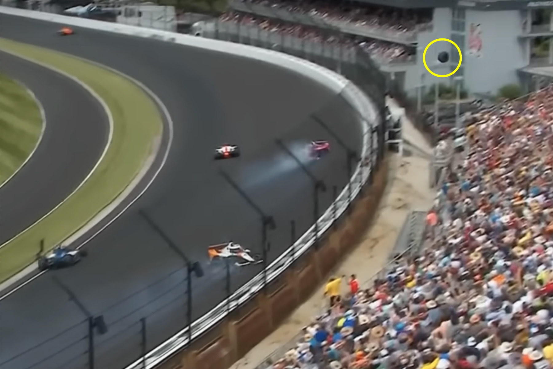 Indy 500 Crash reifen fliegt über Zuschauer 2023
