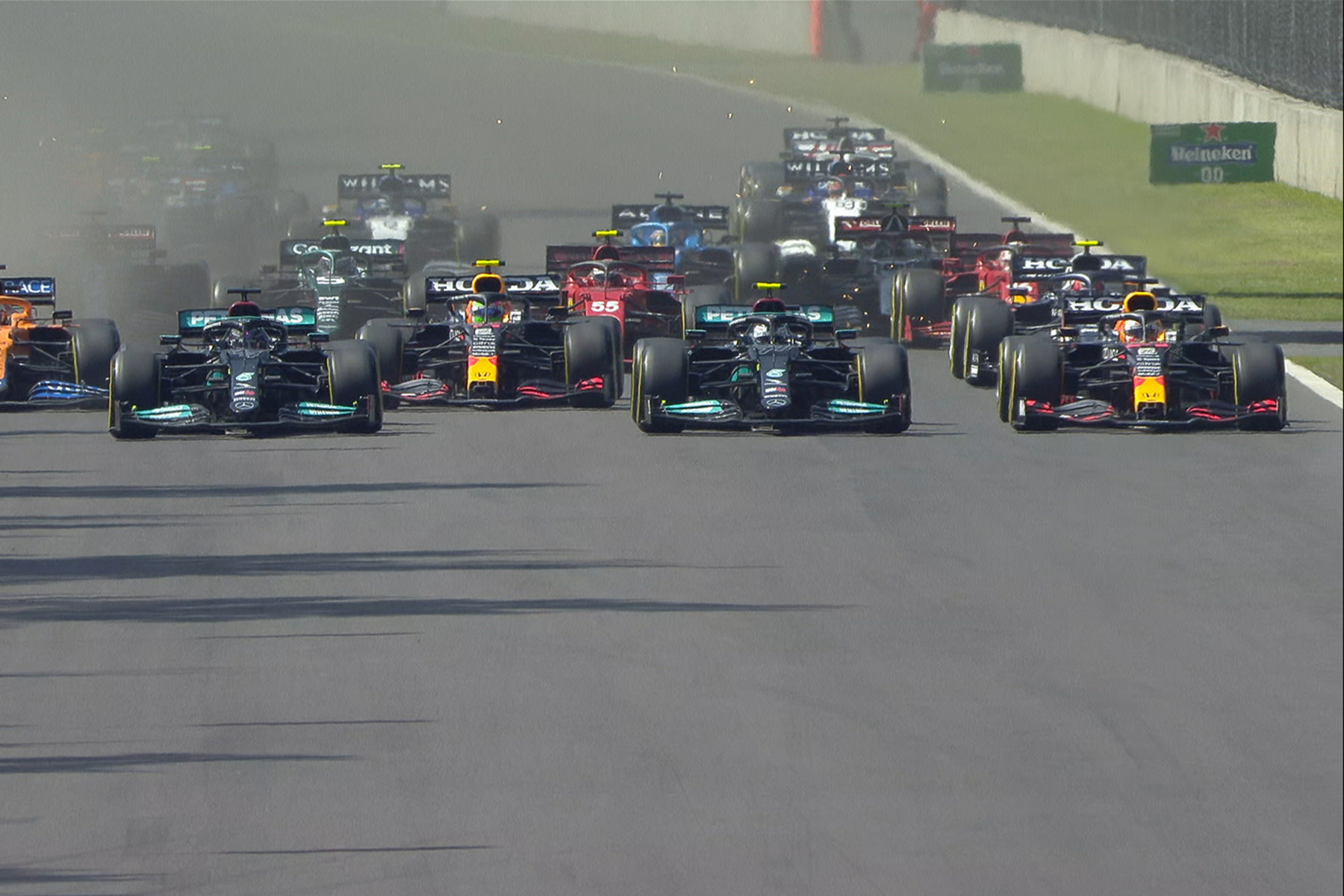 Grund ist der verlorene Start: „Ich habe versucht den Red Bull in meinem Rückspiegel hinter mir zu halten und dachte, Valtteri (Bottas; d. Red.) macht das Gleiche. Er hat aber offensichtlich die Tür für Max aufgelassen. Der war auf der Rennlinie, konnte deshalb in Kurve eins auf der Bremse einen Mega-Job machen. Für mich gab es auf der schmutzigen Innenseite keine Hoffnung“, kritisiert Hamilton seinen sonst so treuen Gefolgsmann.