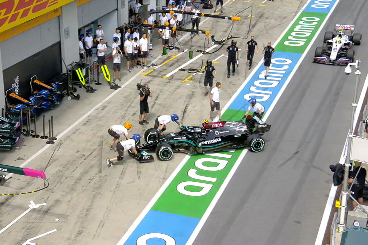 Im Kampf der Wingmen kann Mercedes das Duell gegen Red Bull indes für sich entscheiden. Valtteri Bottas kommt vor Sergio Perez auf Rang drei ins Ziel. Grund ist ein Red Bull-Patzer beim Boxenstopp: Der Mexikaner steht 4,8 Sekunden, weil das Rad hinten links klemmt. Dadurch kann der Finne den Mexikaner via Overcut „in der Box“ überholen. Ein Vorgang der zeigt, wie eng es zwischen den beiden Top-Teams zugeht. Perez wird anschließend auf eine Zweistopp-Strategie gesetzt und hängt bei der Zieldurchfahrt im Windschatten des Schwarzpfeils, kommt aber nicht mehr vorbei.